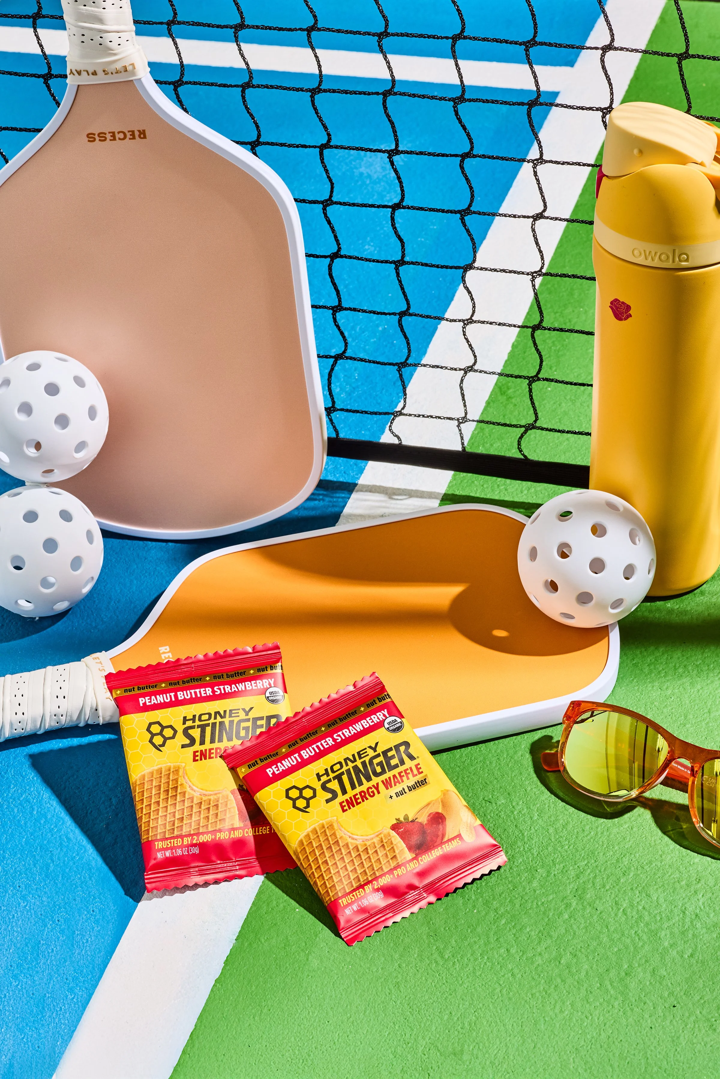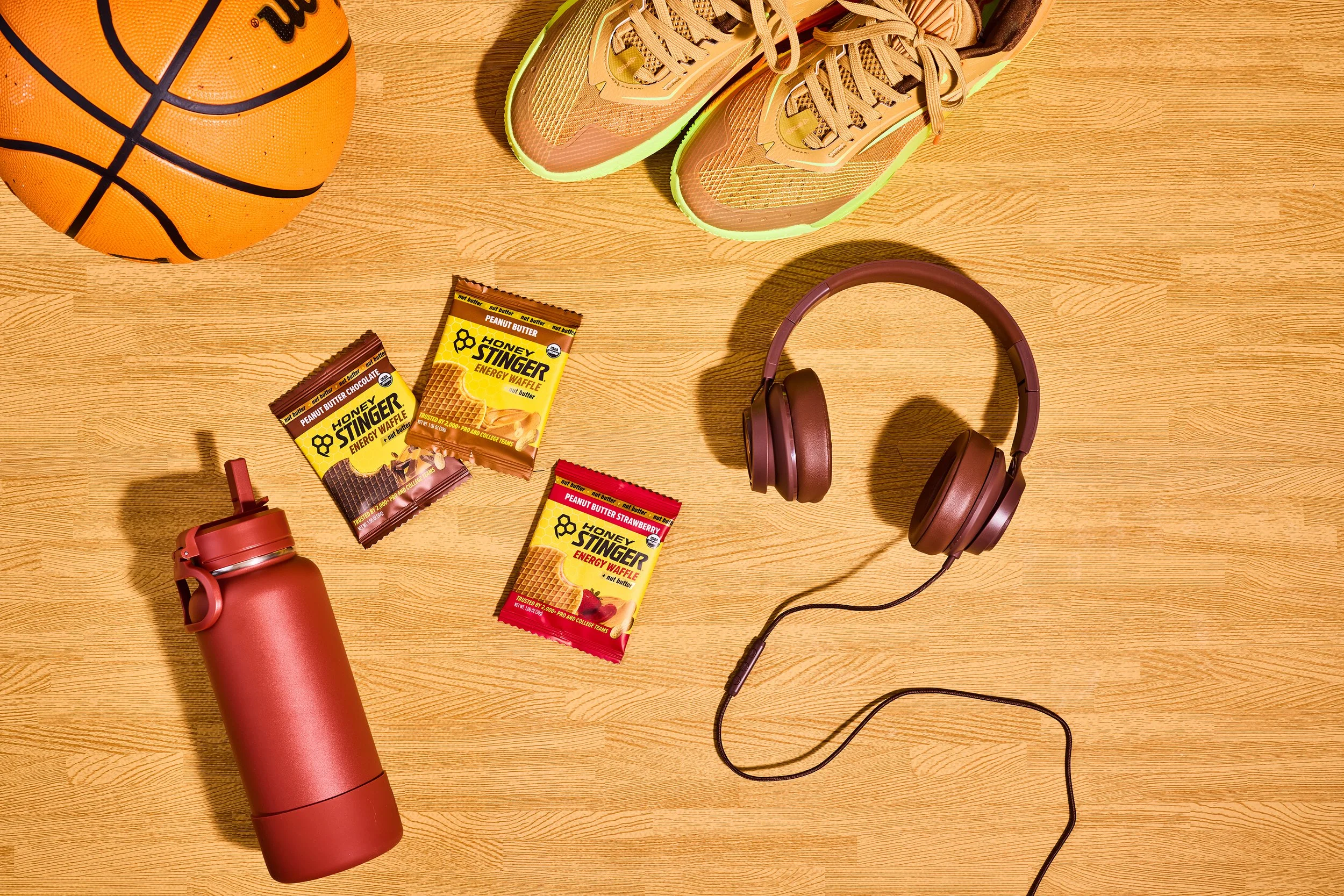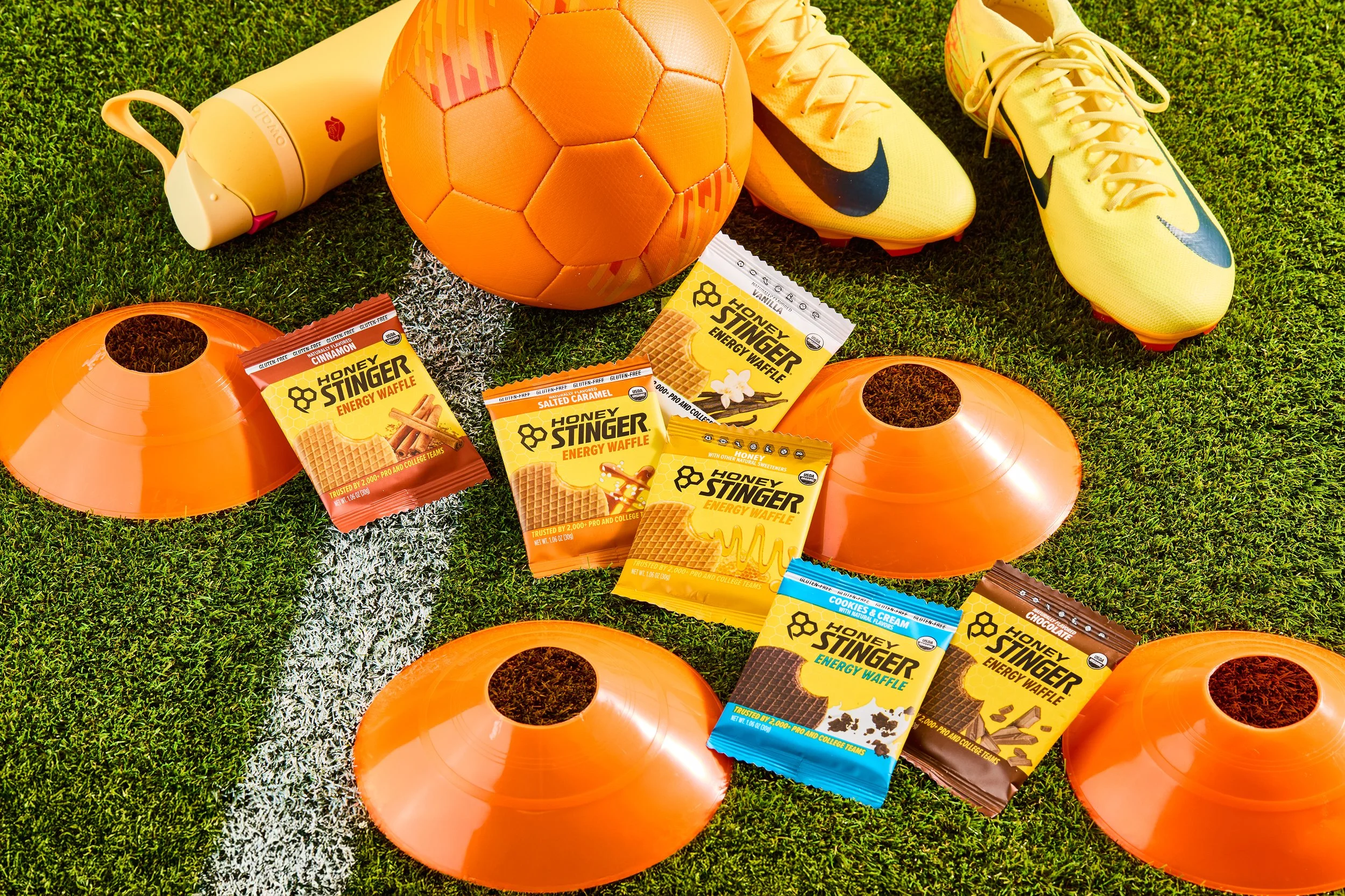 Over 2 days with Honey Stinger, we aimed to cover as much ground as possible and place their products purposefully into a variety of new scenes and settings. We built out mood boards, created new backdrops, sourced sports equipment, and pulled inspiration from the color palettes present on their packaging, from their classic waffles to their gels and energy chews.
