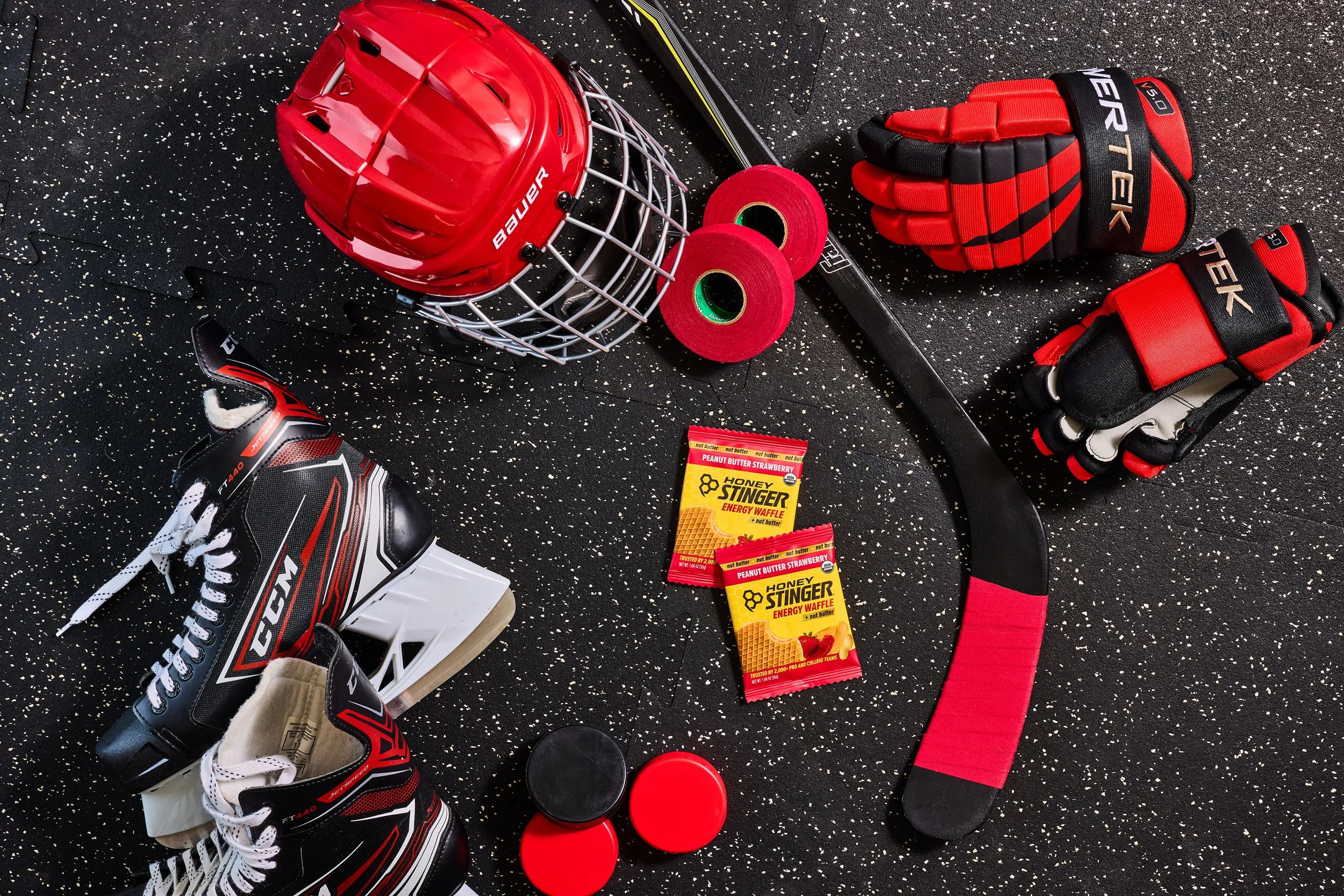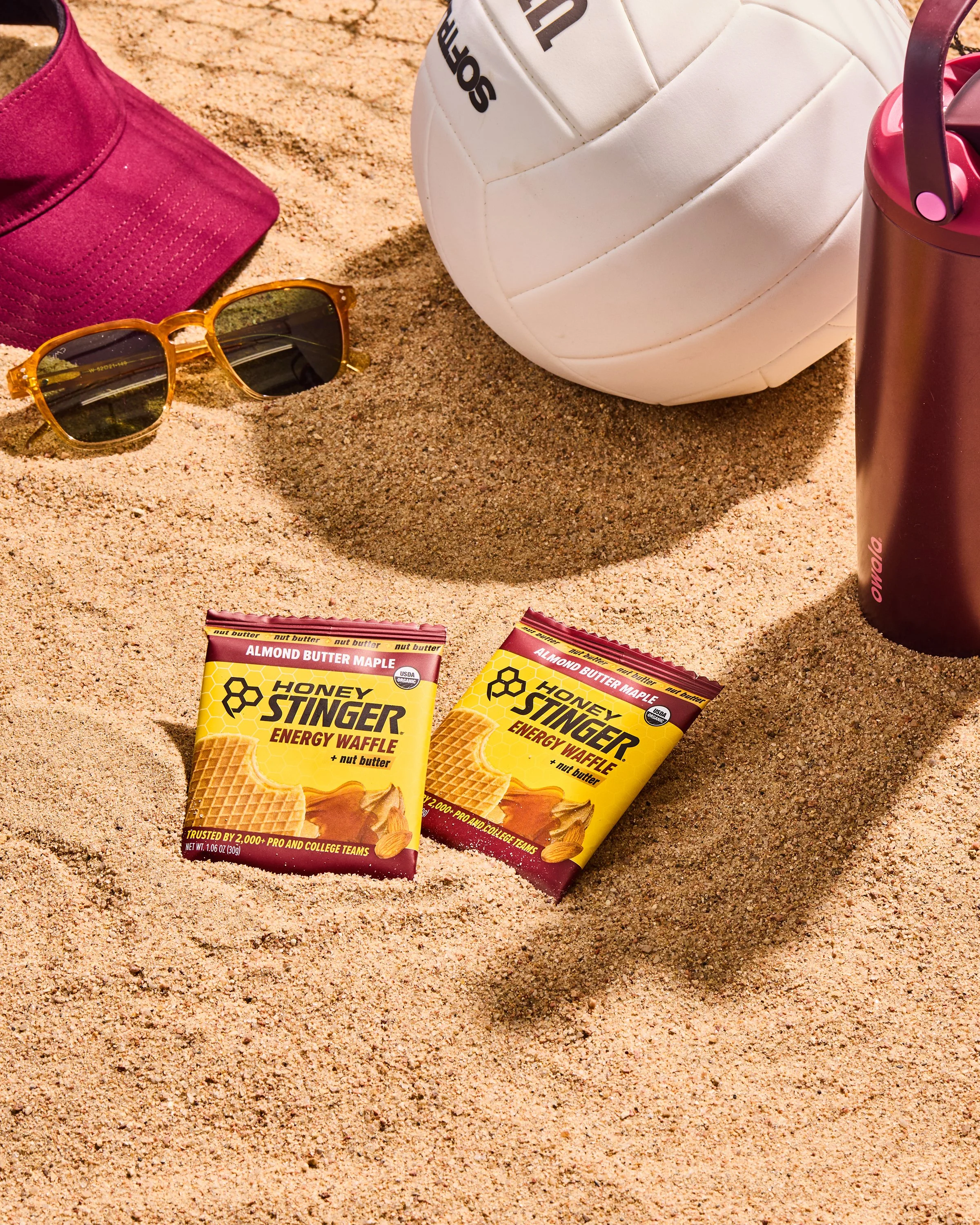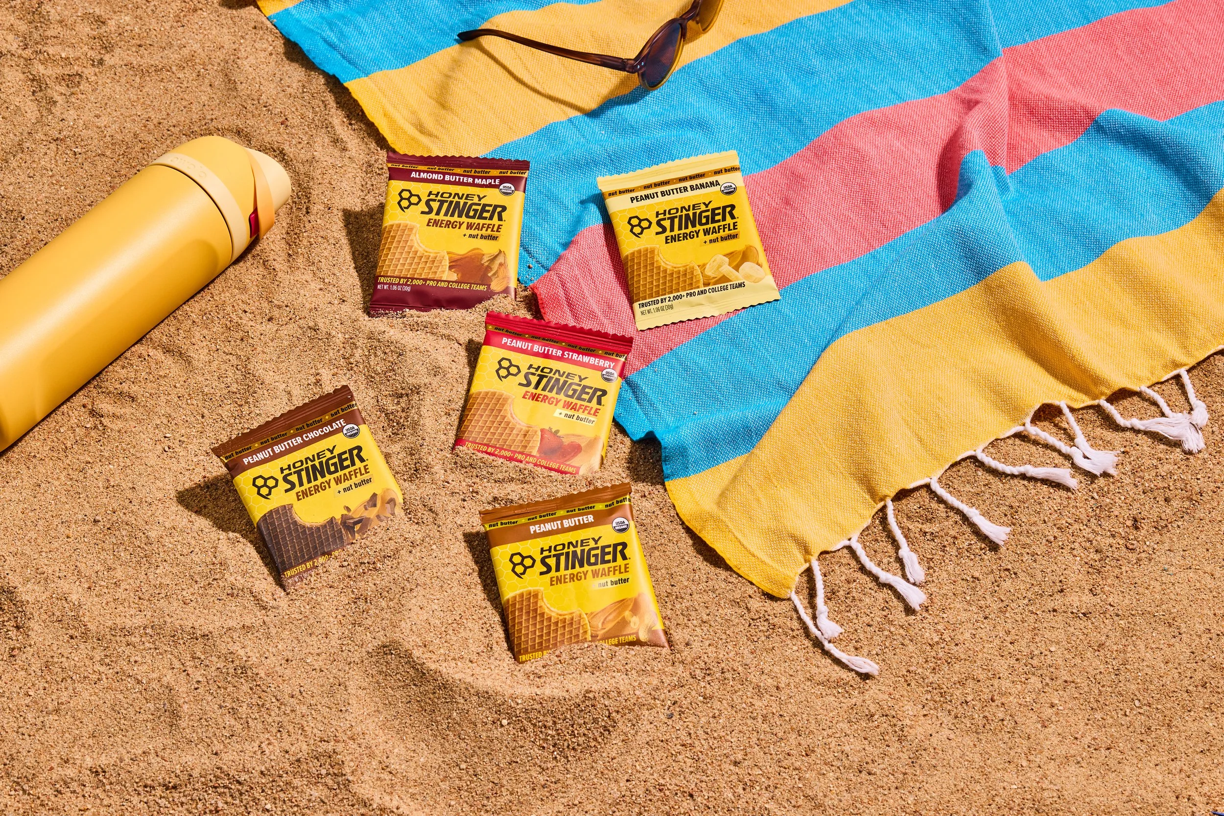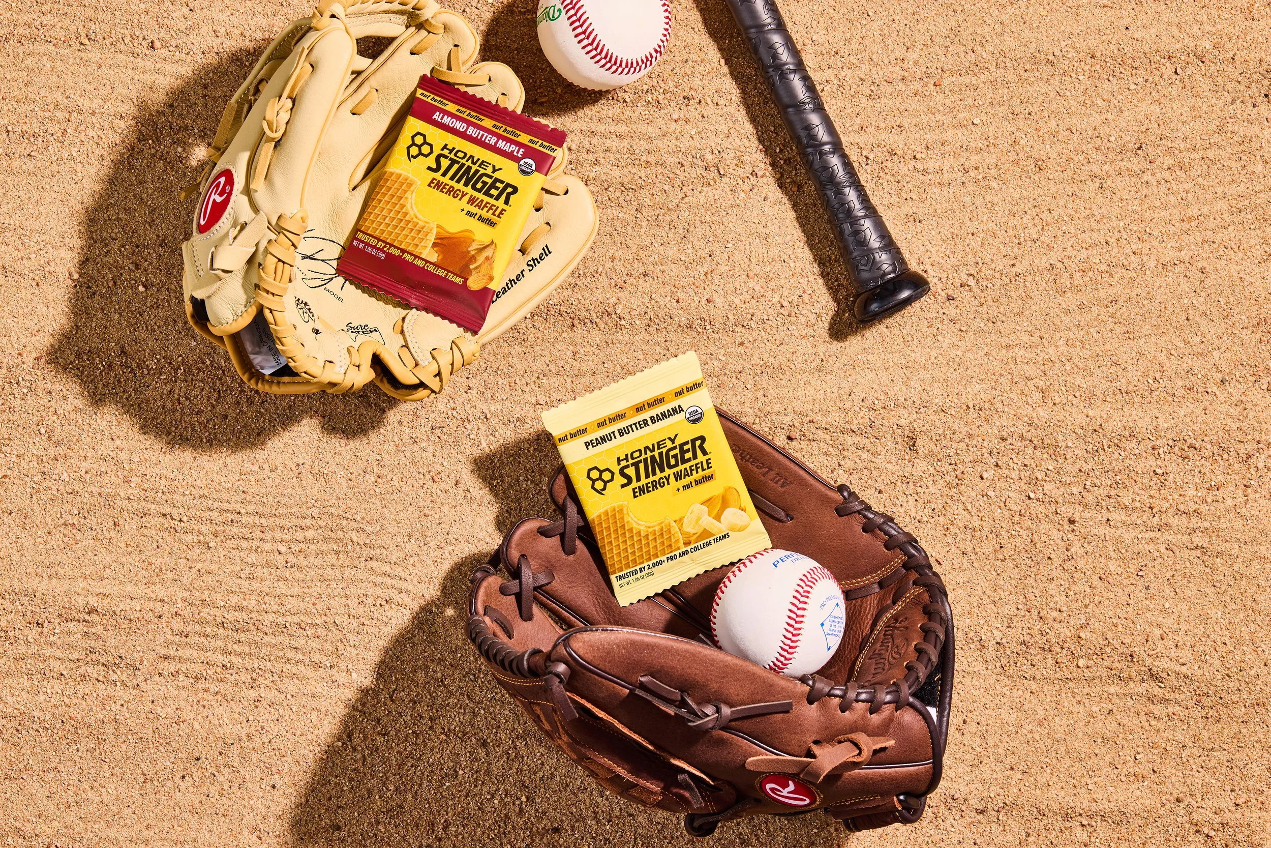 Over 2 days with Honey Stinger, we aimed to cover as much ground as possible and place their products purposefully into a variety of new scenes and settings. We built out mood boards, created new backdrops, sourced sports equipment, and pulled inspiration from the color palettes present on their packaging, from their classic waffles to their gels and energy chews.